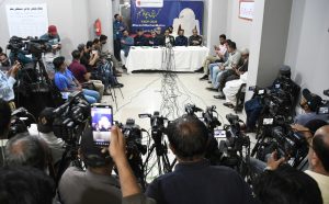 متحدہ قومی موومنٹ پاکستان کے چیئرمین ڈاکٹر خالد مقبول صدیقی کا سینئر مرکزی رہنماؤں سید مصطفیٰ کمال، ڈاکٹر فاروق ستار، انیس قائم خانی، سید امین الحق، فیصل سبزواری اور مرکزی کمیٹی کے ارکان کے ہمراہ مرکز بہادر آباد میں پرہجوم پریس کانفرنس سے خطاب