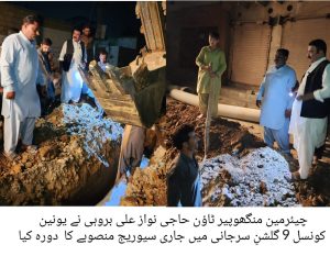 یونین کونسل 9 گلشنِ سرجانی میں جاری سیوریج منصوبے کا دورہ ، نکاسیٔ آب کے نظام کی بہتری کے لیے جاری سرگرمیوں کا چیئرمین منگھوپیر ٹاؤن حاجی نواز علی بروہی کا معائنہ ،میونسپل کمشنر منگھوپیر ٹاؤن احمد یار بھی ہمراہ تھے۔