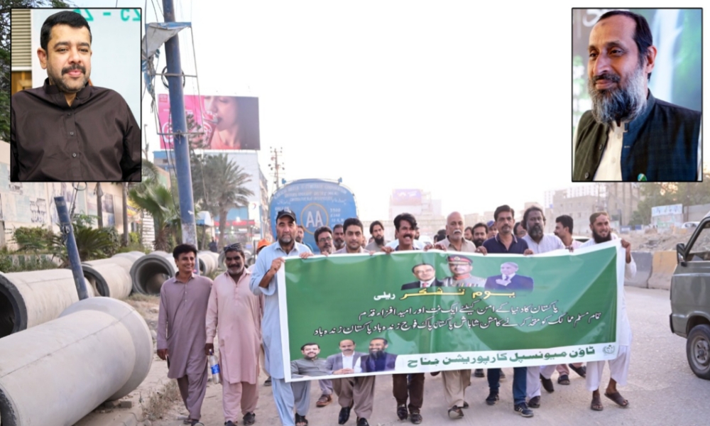 کراچی…… ڈ پٹی کمشنر ضلع شرقی نصراللّٰہ عباسی کی ہدایت اور میونسپل کمشنر رئیس الٰہی بخش بنبھن کی نگرانی میں جناح ٹاؤن کے افسران اور عملے نے حکومتِ پاکستان کے اعلان کردہ یومِ تشکر کے سلسلے میں ایک پروقار ریلی نکالی۔